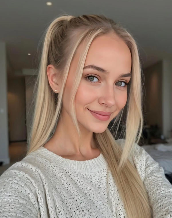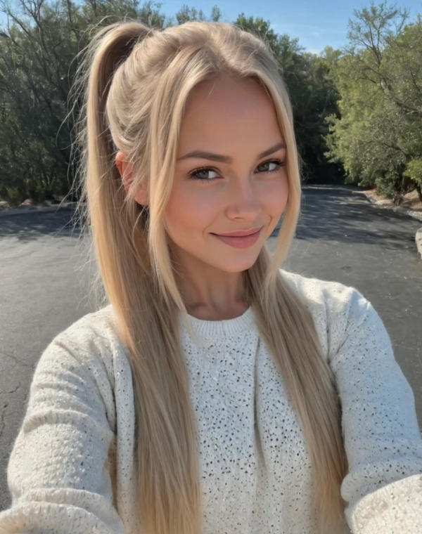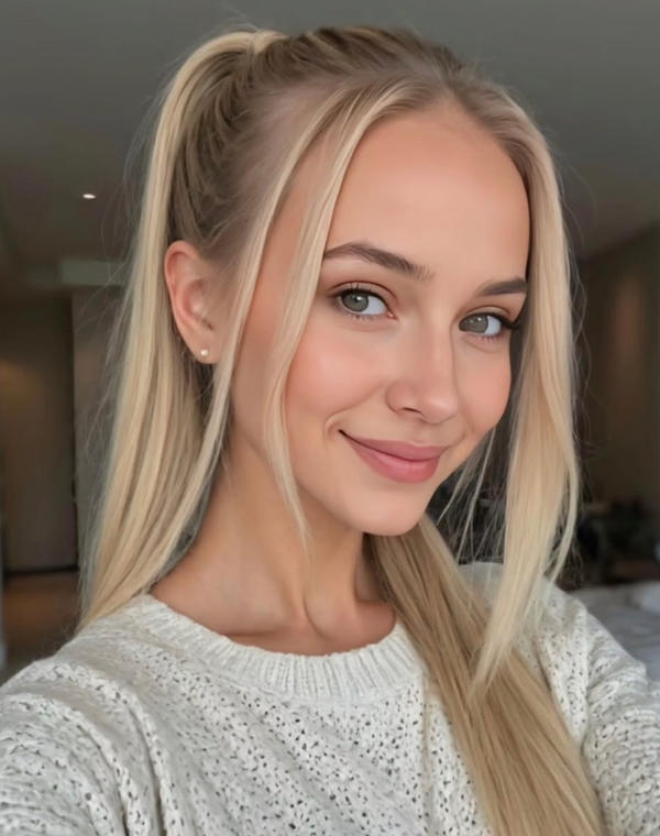 I am a young, well-groomed, sensual blonde with a stunningly elastic body, and gorgeous long hair and lush natural breasts size C cup Natural